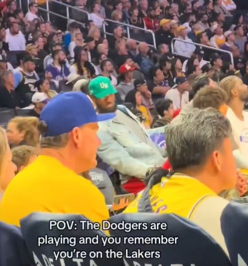 雷速体育10月29日讯 美国媒体Overtime晒出一段昨天湖人比赛期间的视频,因伤缺席比赛的勒布朗被发现在场边一边支持球队一边观看MLB道奇队的世界大赛。